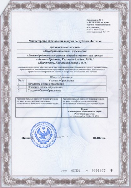 Республика Дагестан, Кизлярский район, с. Большебредихинское, ул. Школьная д. 4